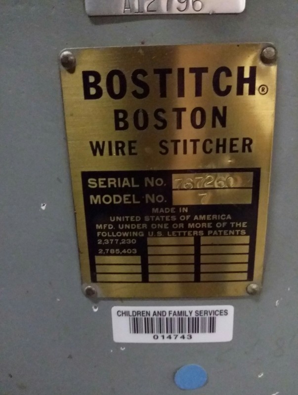 Description: 1 each Boston Bostitch wire stitcher.