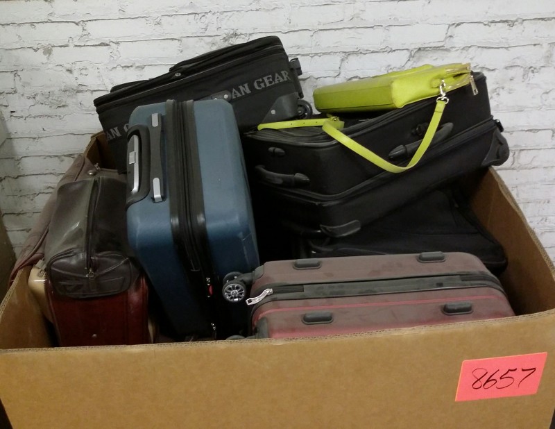 Description: 1 each big box consisting of luggage and bags. The box isn't included in the auction. The winning bidder will need to remove the contents from the box and leave the box behind.