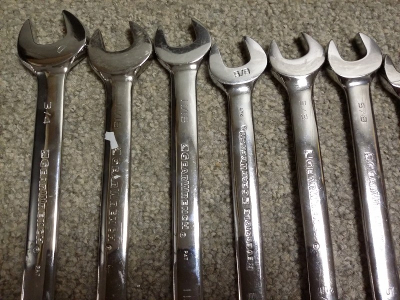 Description: Lot consisting of 11 each standard Gear Wrench ratcheting wrenches.