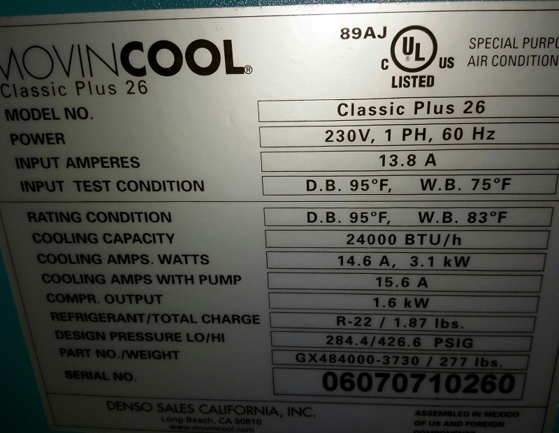 Description: 1 each Movin Cool Classic Plus 26 mobile air conditioner.