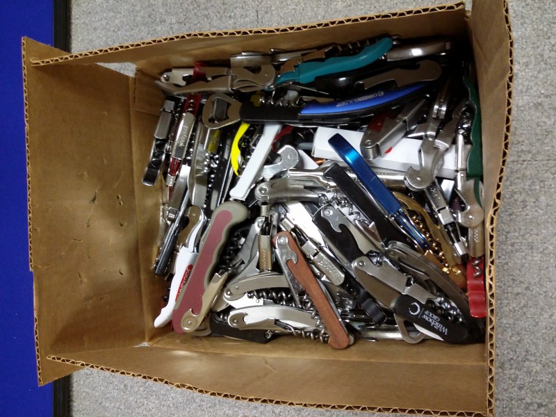 Description: 1 each box consisting of miscellaneous corkscrew/bottle openers.