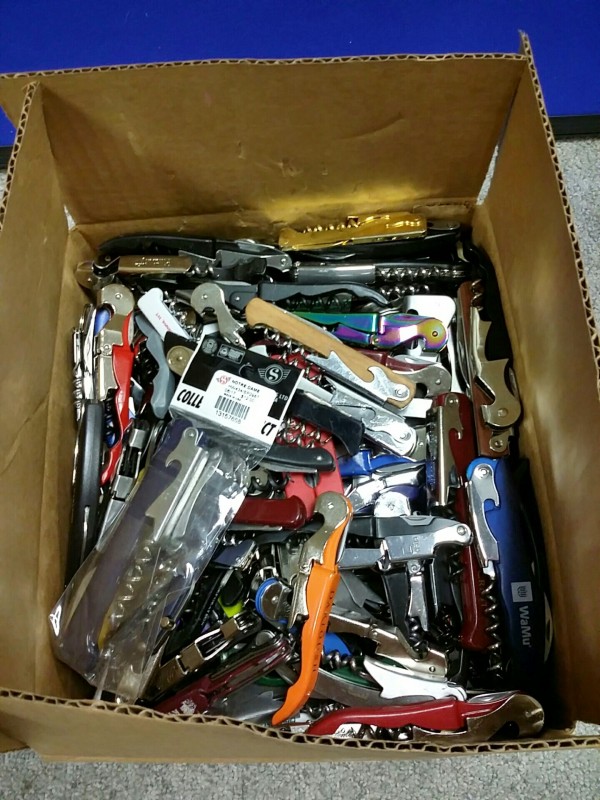 Description: 1 each box consisting of miscellaneous corkscrew/bottle openers.