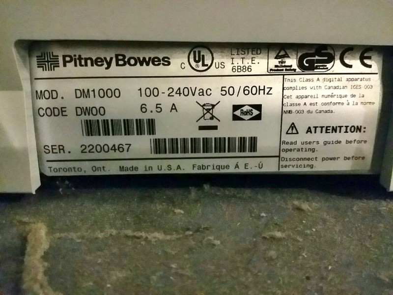 Description: 1 each Pitney Bowes model DM1000 mailing system with stand.