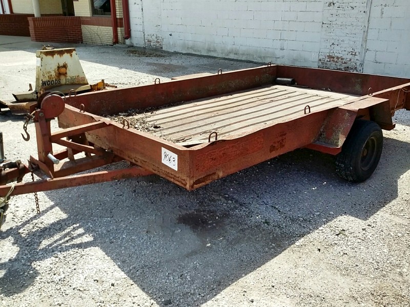 Description: 1 each Jacobsen single axel tilt bed trailer. The trailer has one flat tire.