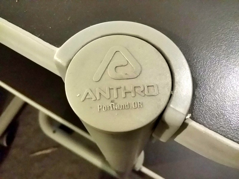 Description: 1 each Anthro computer desk/workstation. Unit has lockable wheels.