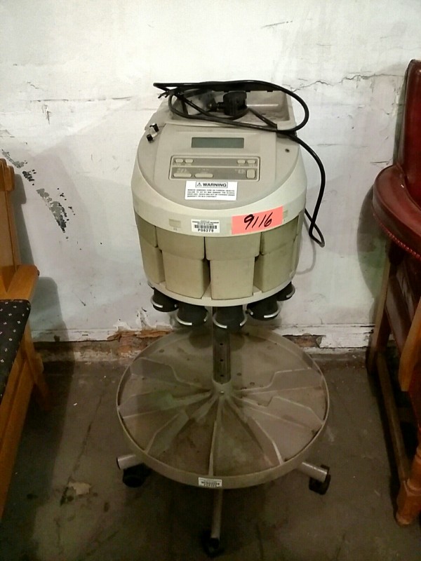 Description: 1 each Brandt Mach 5 coin counter with stand.