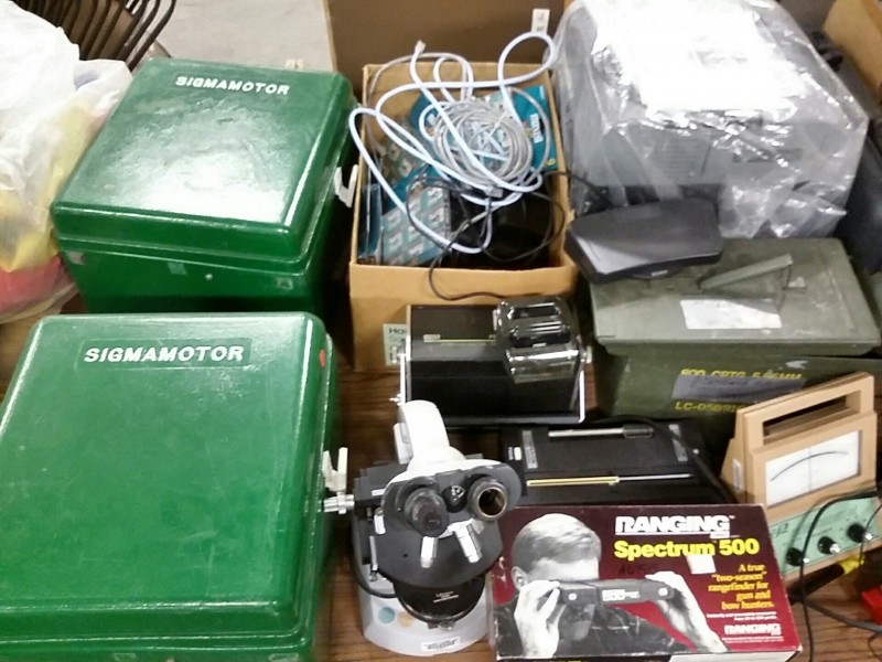 Description: 1 each table lot consisting of miscellaneous items. The table isn't included in this lot.