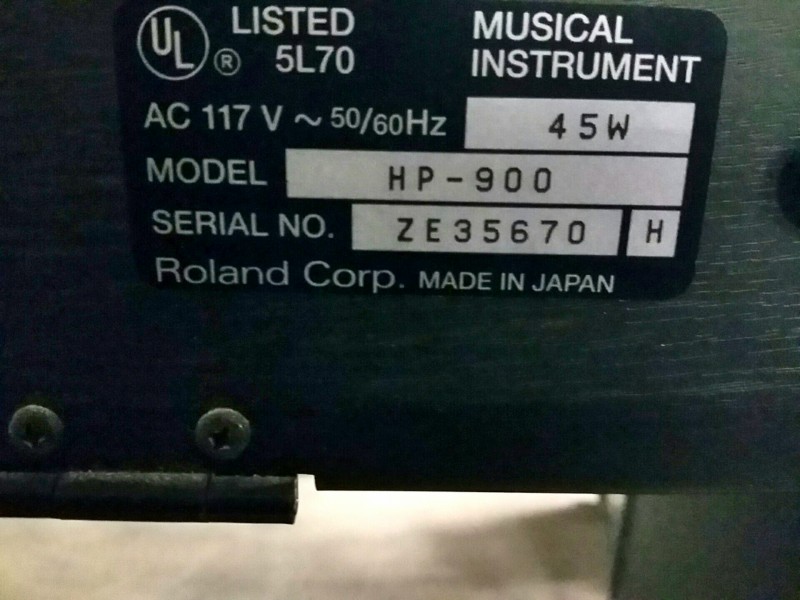 Description: 1 each Roland model HP-900 digital piano without power cord. NO POWER CORD AVAILABLE!