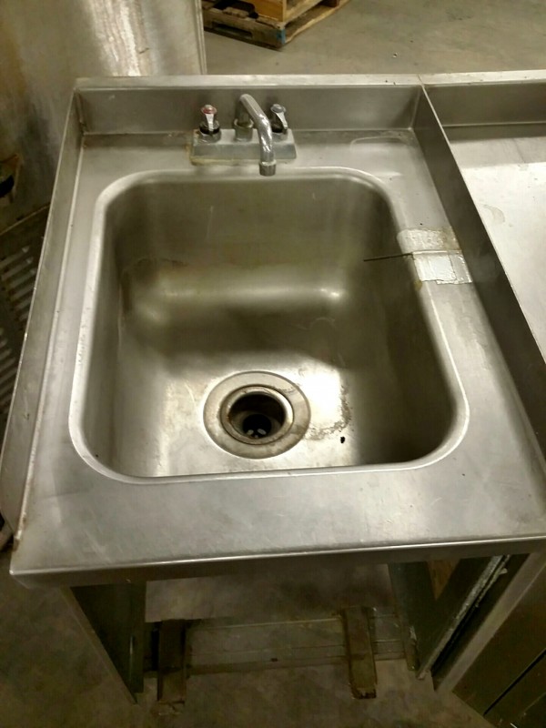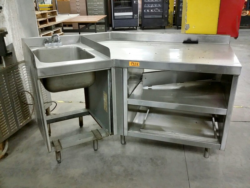 Description: 1 each Randell custom made stainless steel corner sink/worktop.