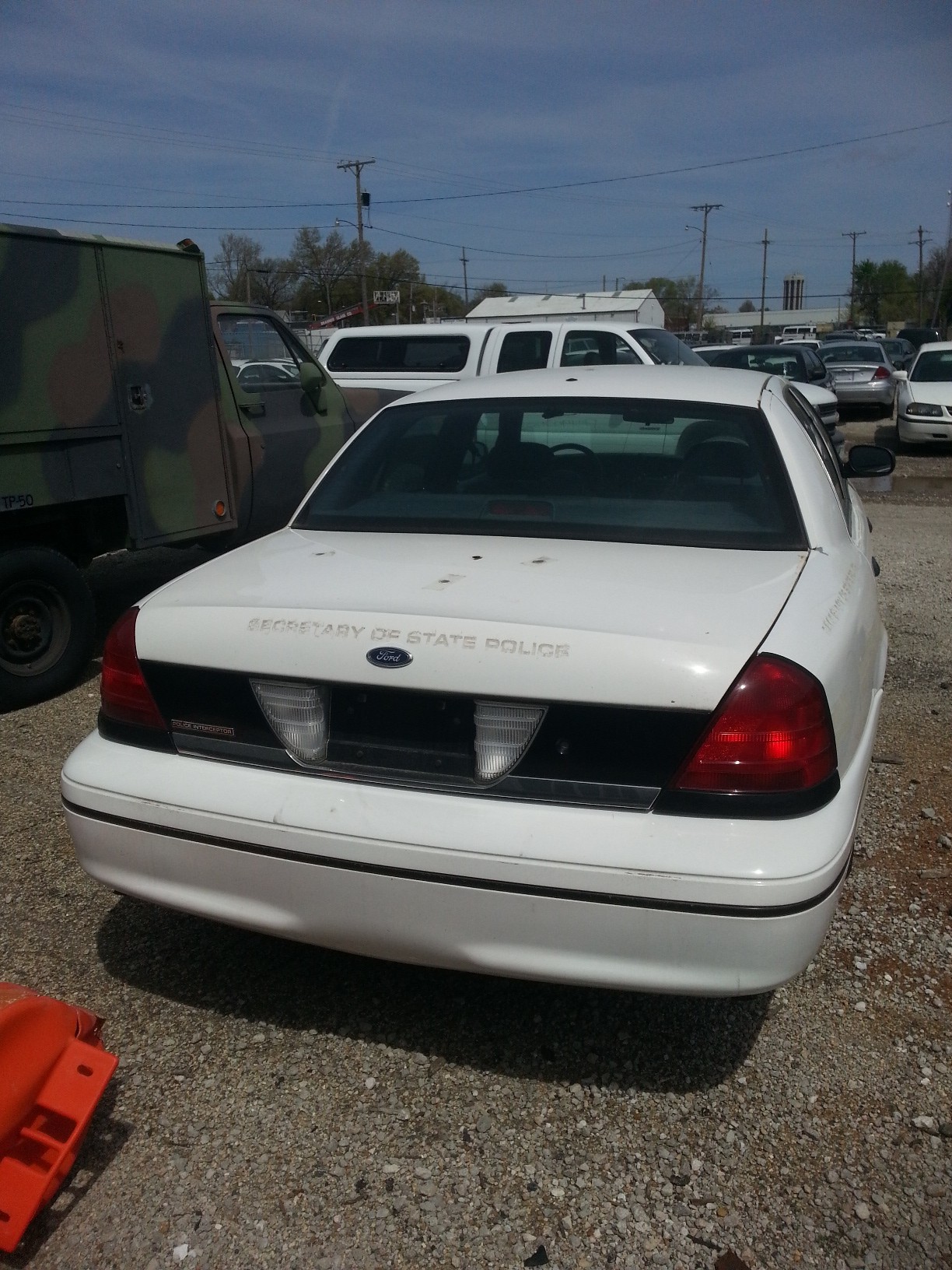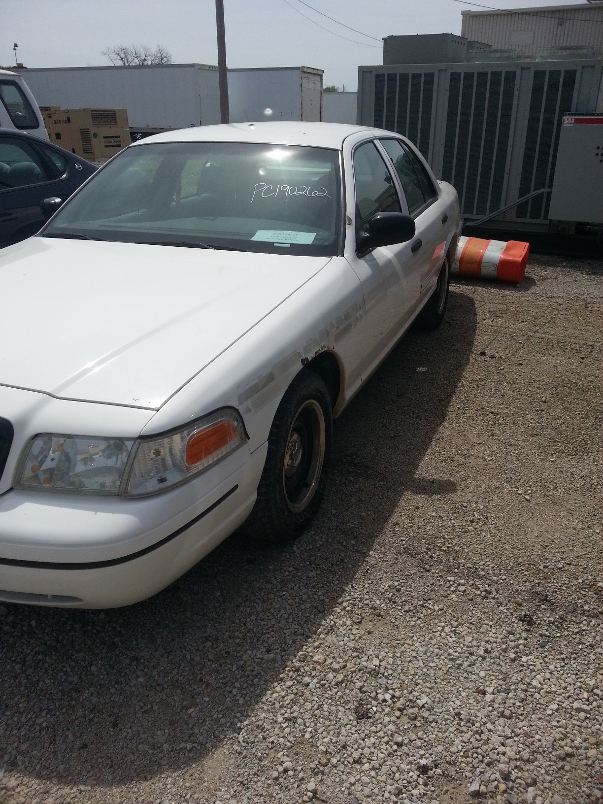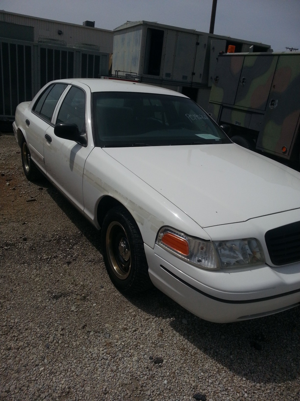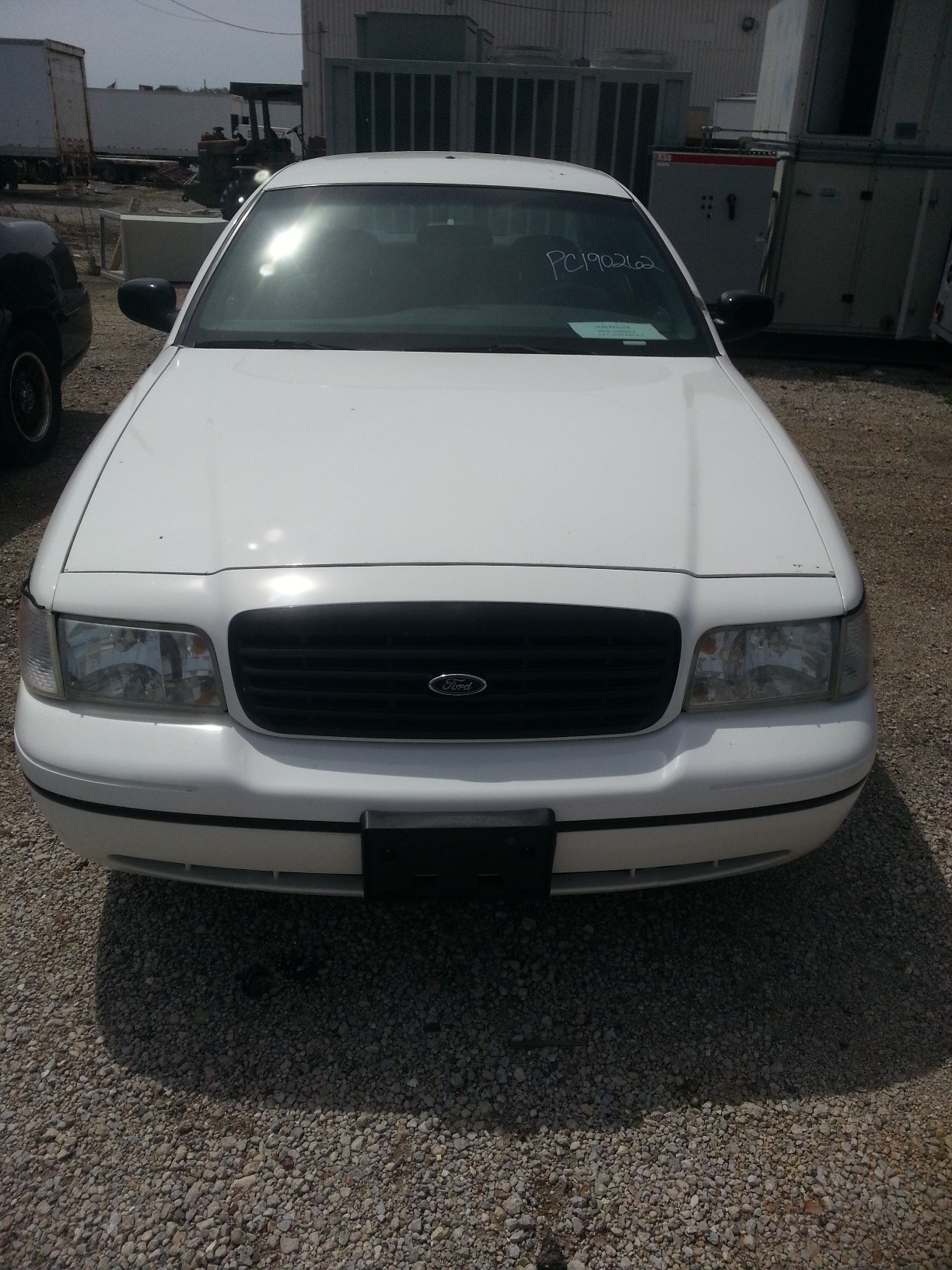 1999 Ford Crown Vic, Equip#PC190262 VIN2FAFP71W8XX232977 White/ Ext../Blue Int., Starts with a jump, Moves Forward and Backward, Cruise Control, Air Conditioning, AM/FM Radio, Electric Windows and Locks. 127323 Miles. Engine: 4.6L V8 SOHC 16V.