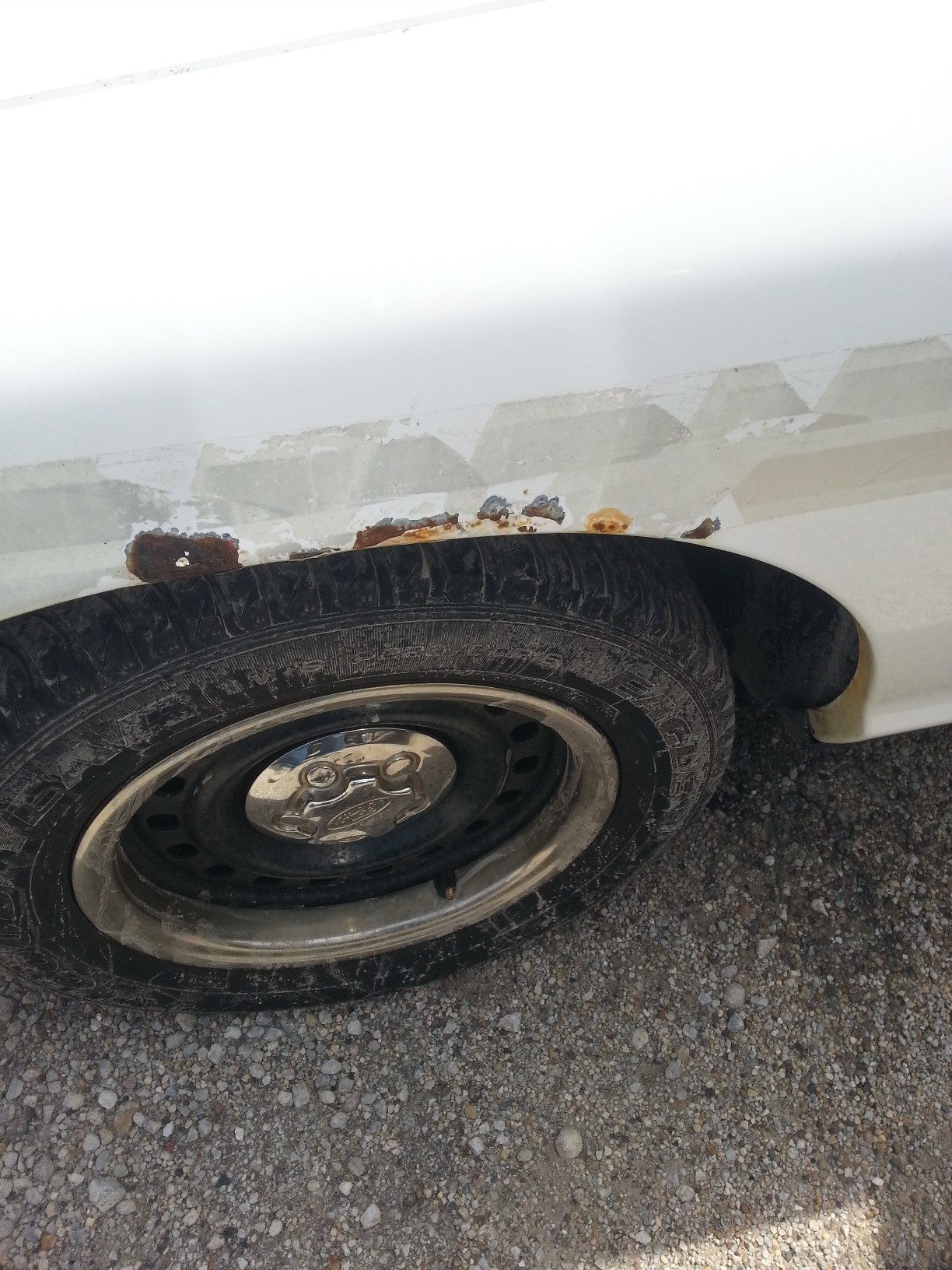 • Check for signs of previous damage, including mold, paint that doesn't match the rest of the vehicle, frayed safety belts, fenders and doors that don't align, silt in the trunk, and uneven tire tread;