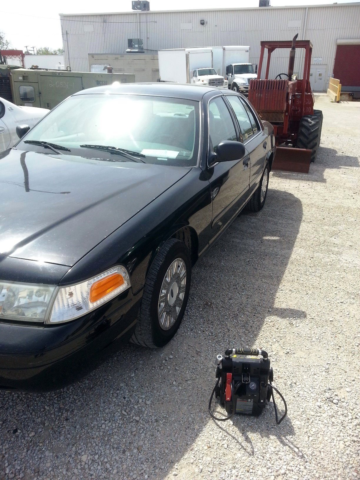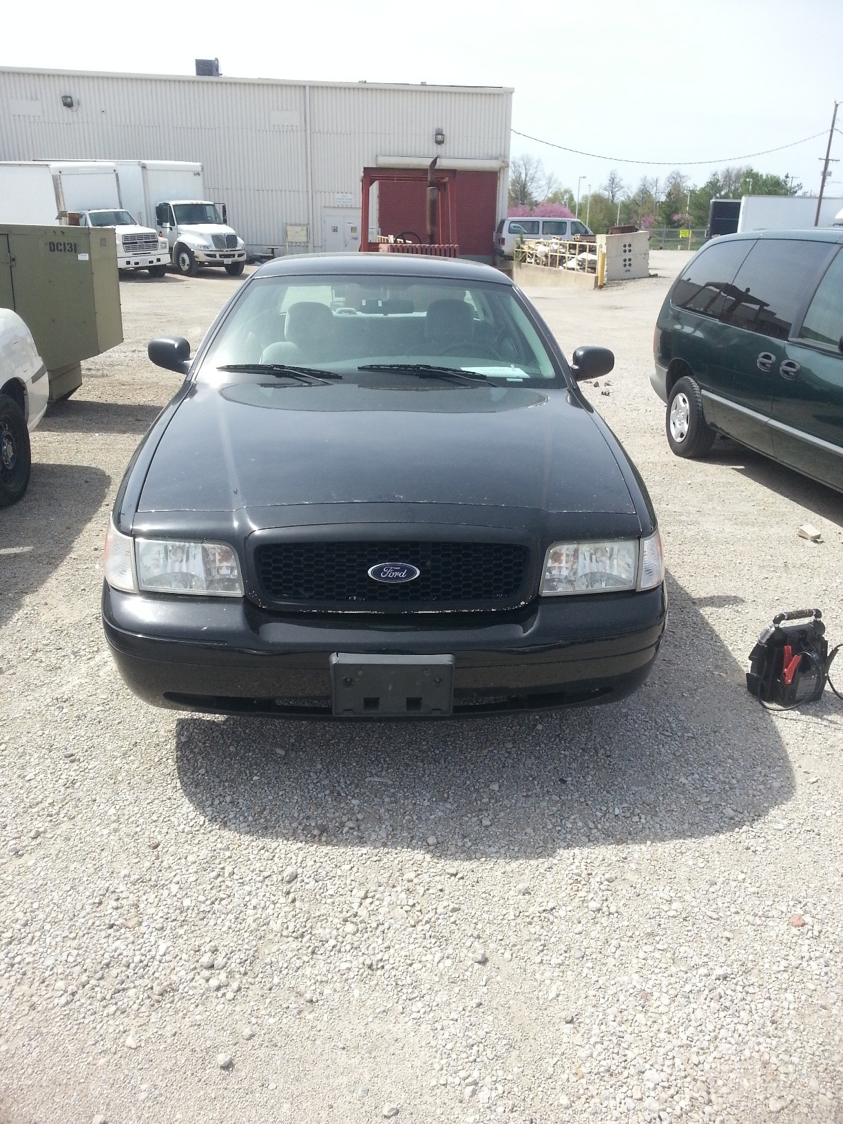 2003 Ford Crown Vic, Equip#PC151059 VIN# 2FAFP71W43X198966) Black/ Ext../Lt. Gray/Int.,Starts without a jump, Rough Idle, Dies when put into drive, Radio Missing, Moves Forward and Backward with one foot on gas and one on brakes, Hard to keep running, Cruise Control, Air Conditioning, Electric Windows and Locks. 151041 Miles. Engine: 4.6L V8 SOHC 16V.