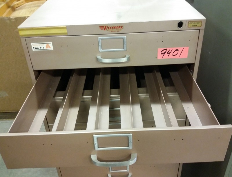 Description: 1 each Recordak Film File model III ten drawer microfilm file cabinet.