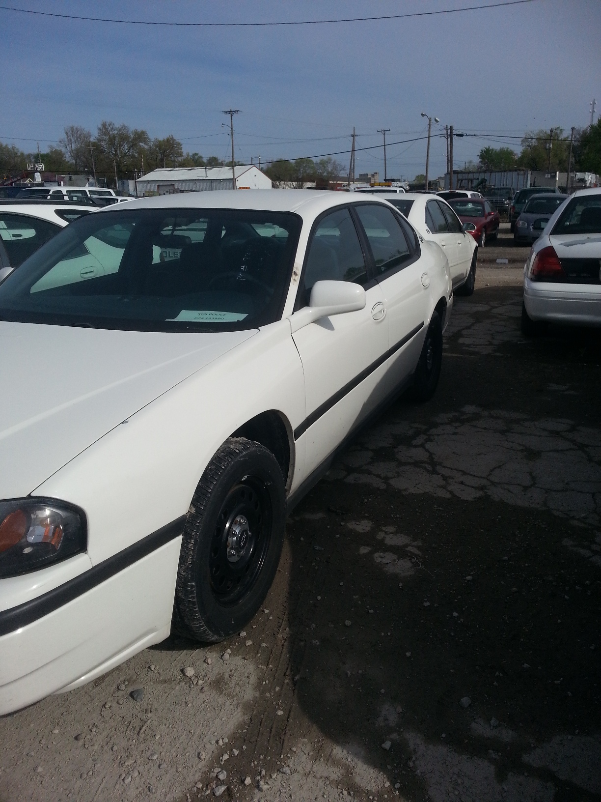 2005 Chevrolet Impala, Equip# PC193890, VIN#2G1WF55K659312393White/ Ext../Blue/Int.Starts with a jump, Moves Forward and Backward, Cruise Control, Air Conditioning, AM/FM Radio/Tape Player, Electric Windows and Locks, 129772 Miles. Engine: 3.8L V6 OHV 12V.
