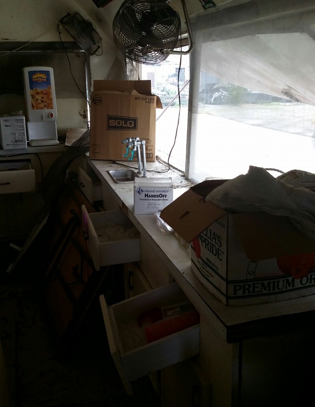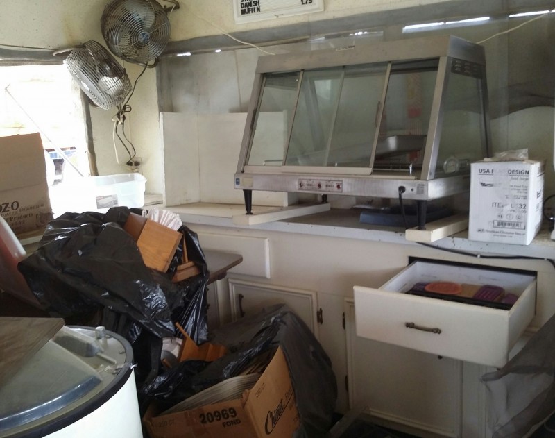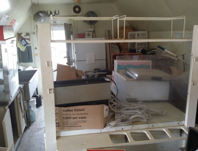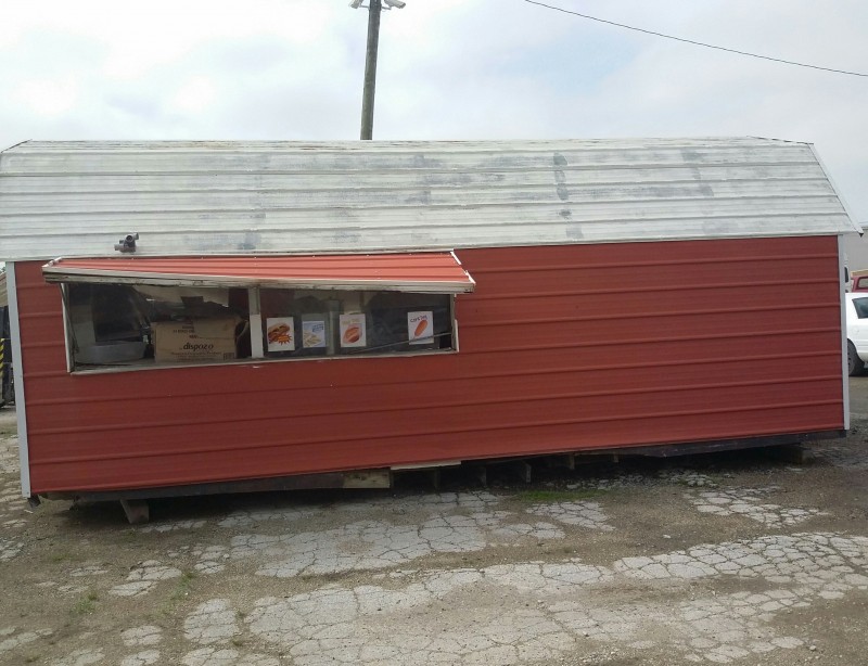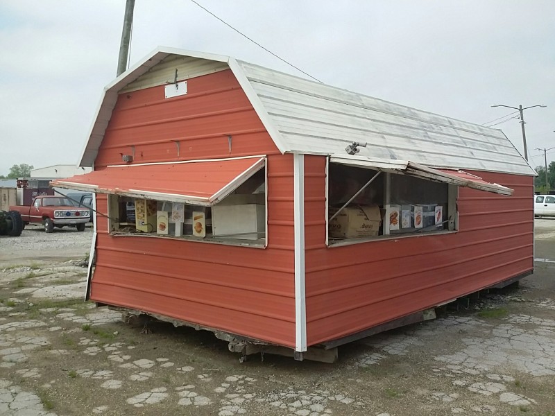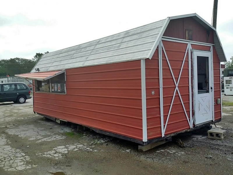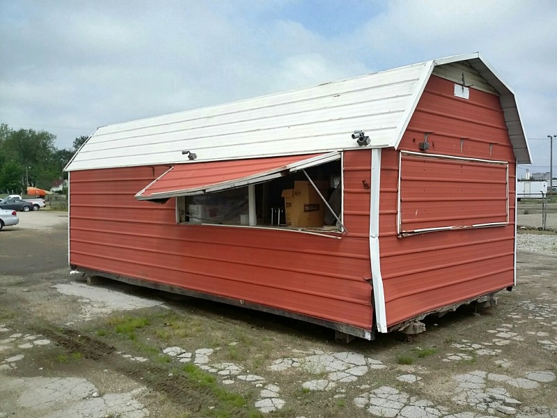 Description: 1 each Morgan shed model 1224AT3DASSN converted to a concession shed. All contents in the pictures are included with the auction. The shed will need some repair as you can see in the pictures. Know what you are bidding on, viewing of this auction is highly recommended. The winning bidder will need to remove the shed along with its contents. Nothing will be allowed to be left behind.