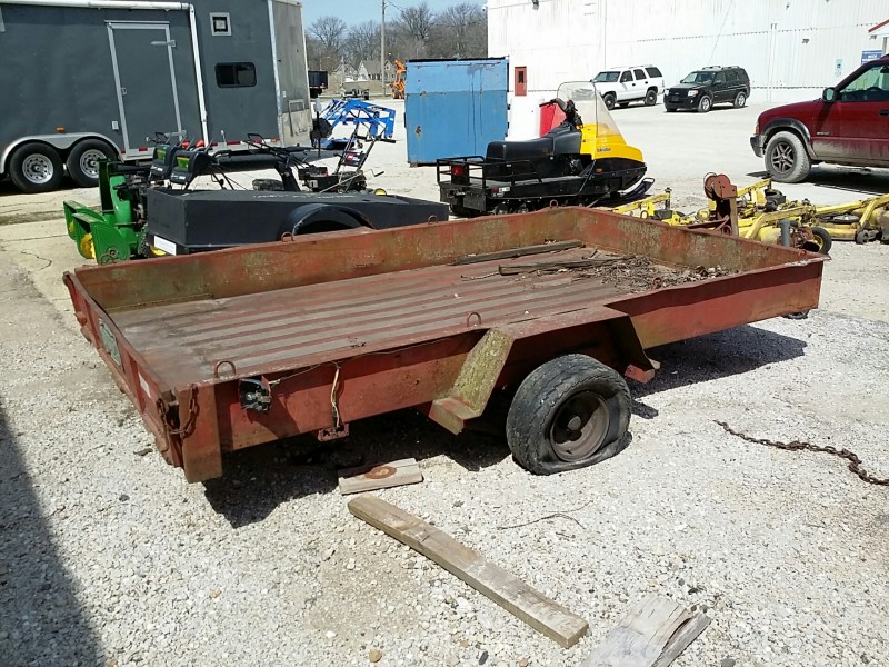 Description: 1 each Jacobsen single axel tilt bed trailer. The trailer has one flat tire.
