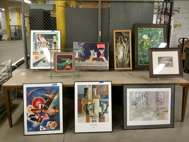 Description: Lot consisting of 8 each pieces of framed art and 1 each other. REVISED 6/21 the picture stands are not included with this auction.