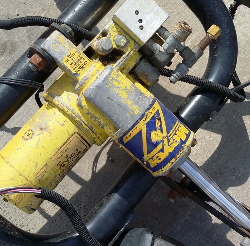Description: 1 each Meyer snow plow pump mounted to a hoop light bar with lights.