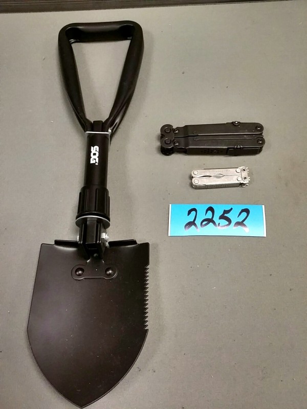 Description: Lot consisting of 1 each Sog folding shovel and 2 each Sog multi-tools.