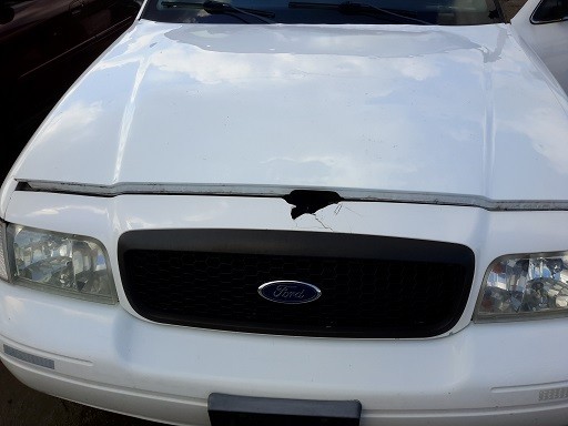 Exterior: Paint is in overall fair condition, with peeling and fading. Normal dents, dings and scratches as consistent with vehicle age, mileage and use. Decal and sticker remants may or may not remain on paint. Rust may or may bot appears on several areas around the vehicle. May or may not have undercarriage rust damage. Other small paint flaking and some surface rust may or may not be present. No other major damage was noticed on walk around. There may or may not be holes from removal of communication antennas and equipment on roof and trunk lid. Hood cracked may or may not close.
