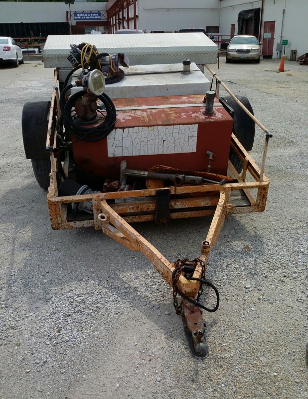 Description: 1 each utility trailer with gas pumps and diamond plate tool box (no key). Viewing of this lot is highly recommended before bidding. NO TITLE available for this unit.