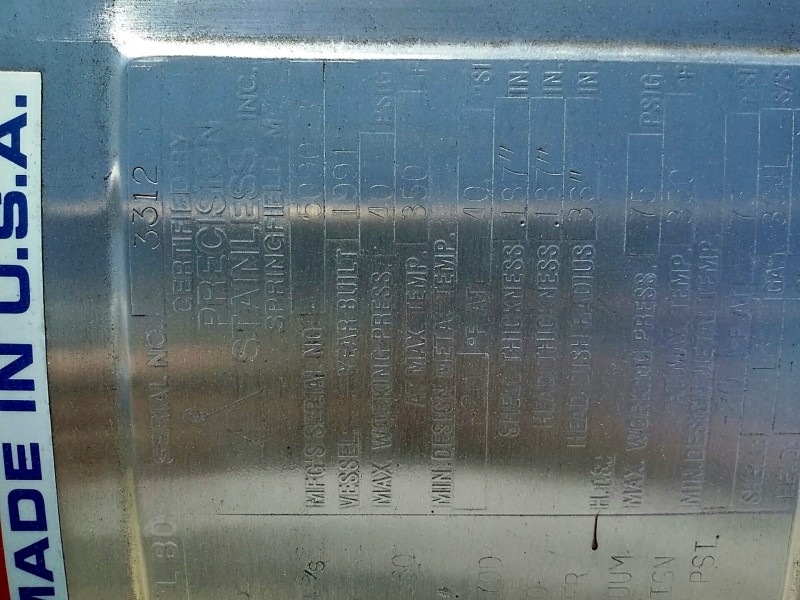 Description: 1 each stainless steel tank.