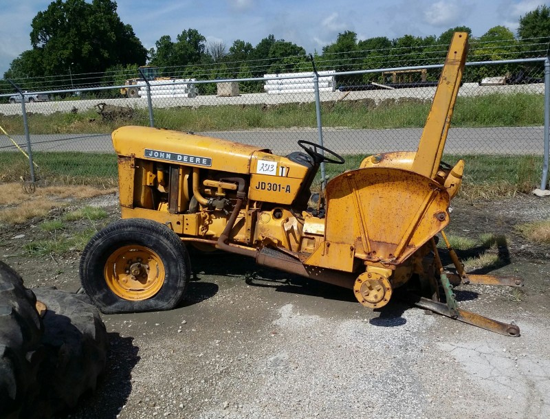 Description: 1 each John Deere 301A tractor. This unit has been cannibalized and is missing parts.