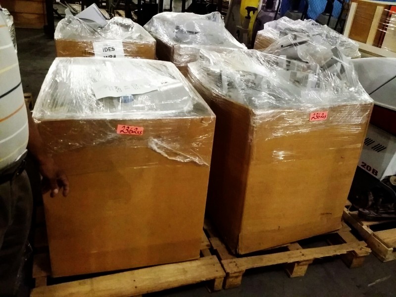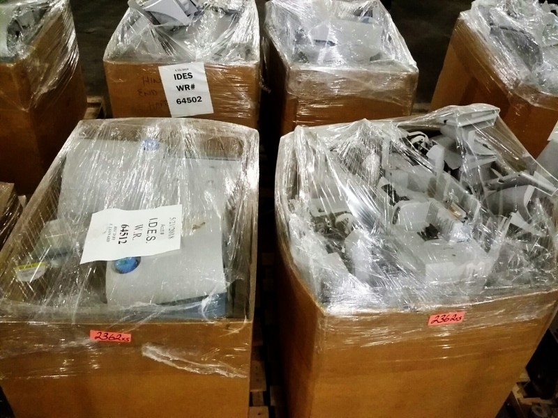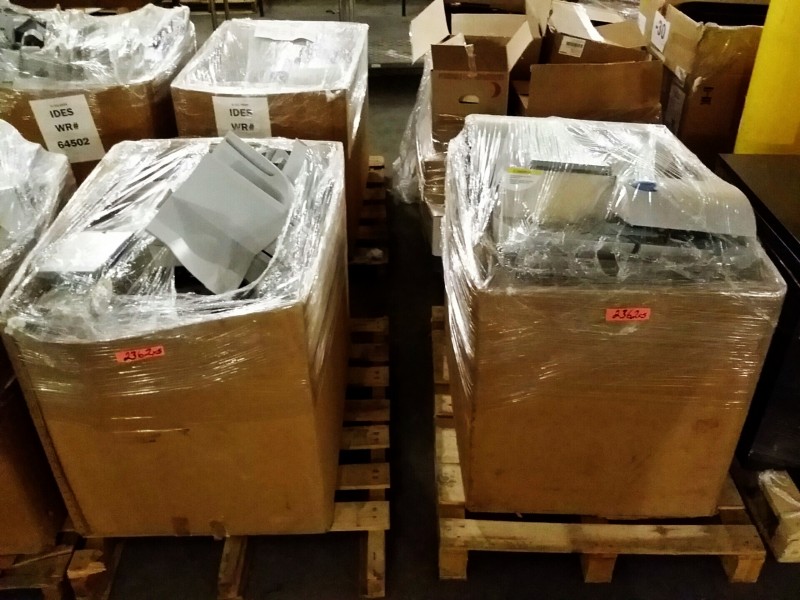 Description: Lot consisting of numerous postage meters in 6 each pallet boxes. Unknown quantity and condition. No known history of these units. Viewing in person is highly recommended before bidding.