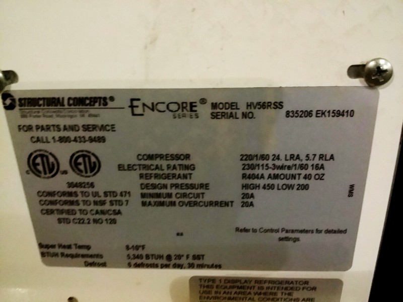 Description: 1 each Structural Concepts Encore model HV56RSS merchandising cooler.