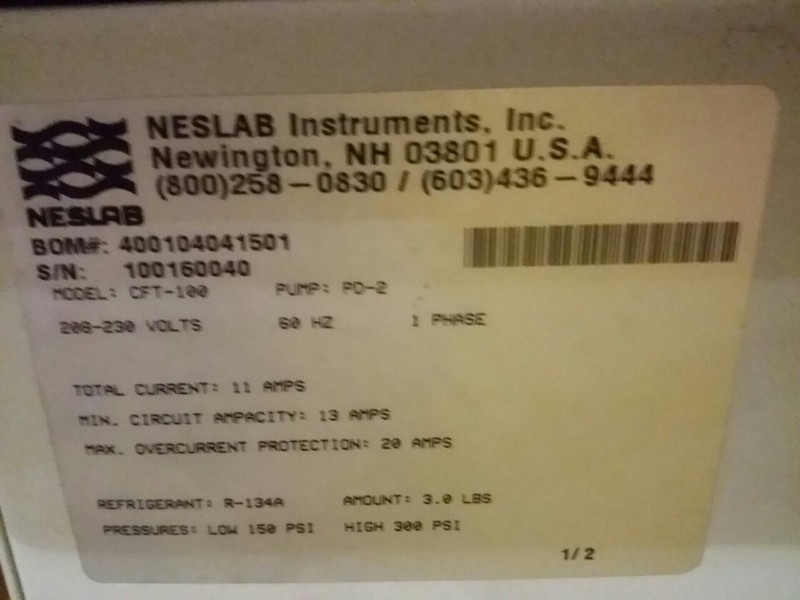 Description: 1 each Neslab model CFT-100 refrigerated recirculator chiller on wheels.
