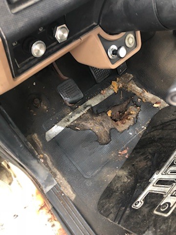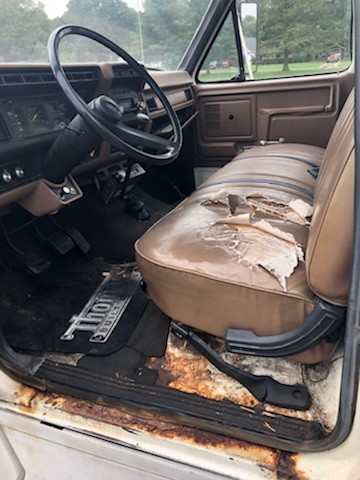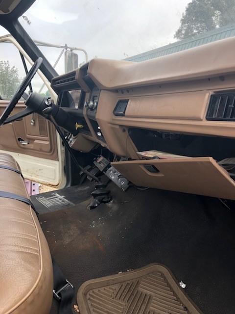 Started with a jump.Box frame condition is poor due to rust underneath. Brakes condition poor due to bad brake lines. VEHICLE NEEDS TO BE TOWED OFFSITE. Cab interior condition is poor. Engine has rear seal leak.Transfer case leaks.Box bed flooring condition is poor. Carburetor and exhaust needs work. Pinion seal leaking. See photos for additional viewing.