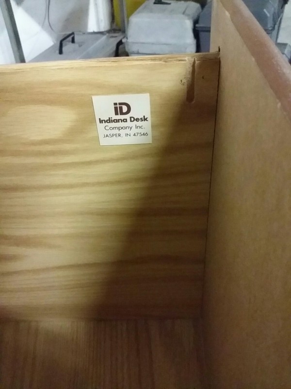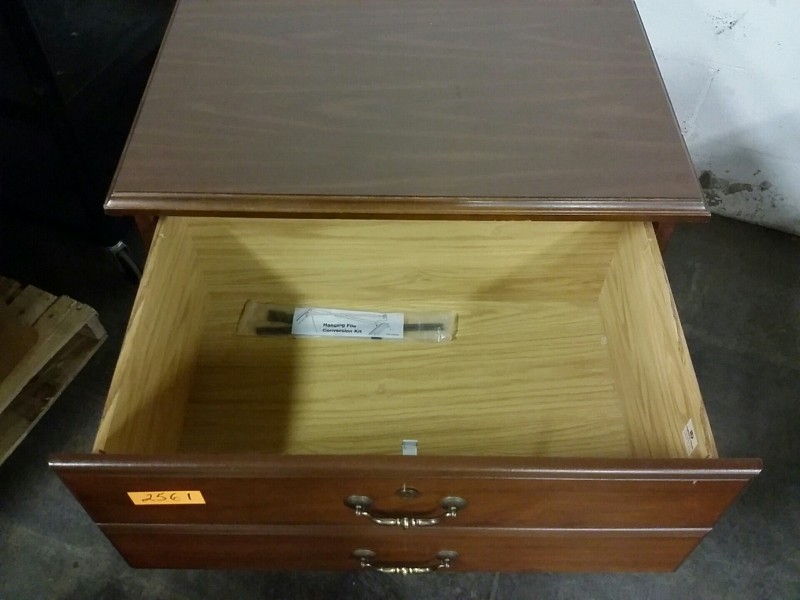 Description: 1 each two drawer lateral file cabinet made by Indiana Desk.