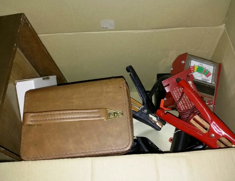 Description: 1 each table lot consisting of miscellaneous items. The table isn't included in this lot.