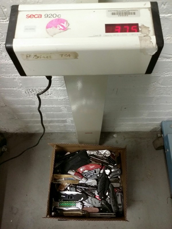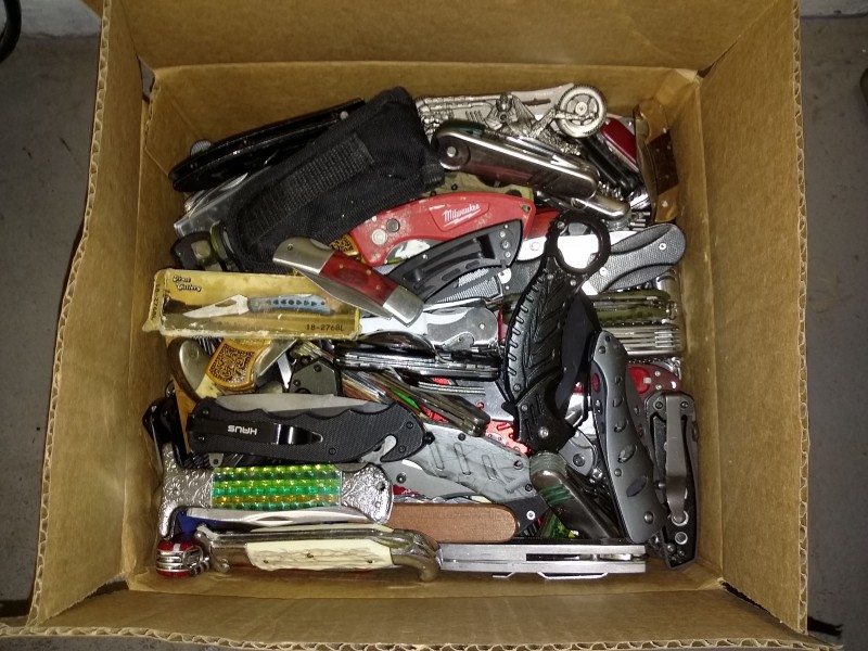 Description: 1 each 37lb box consisting of miscellaneous pocket knives.