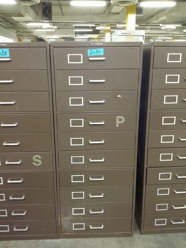 Description: 1 each UMI "The Space Saver" microfilm file cabinet.