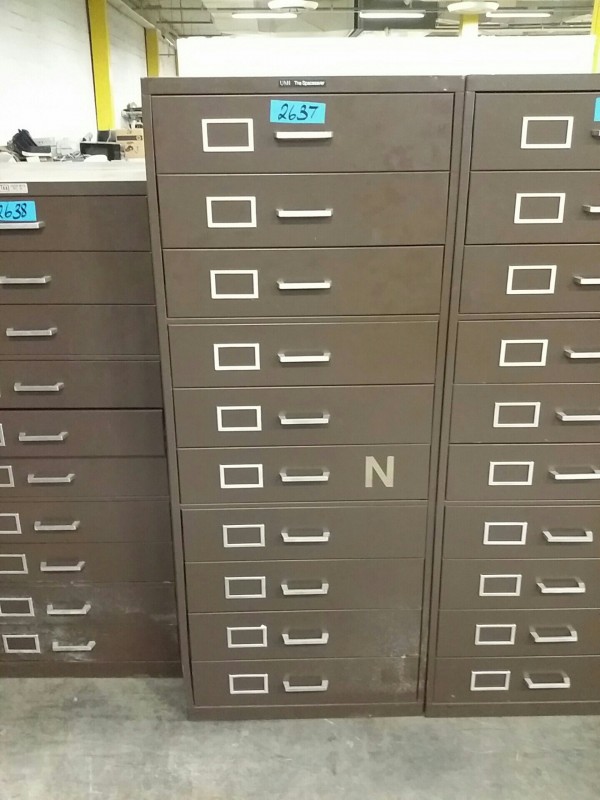 Description: 1 each UMI "The Space Saver" microfilm file cabinet.