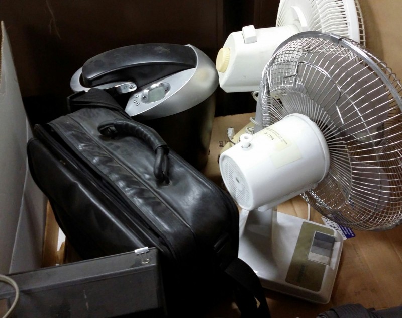 Description: 1 each table lot consisting of miscellaneous items. The table isn't included in this lot.