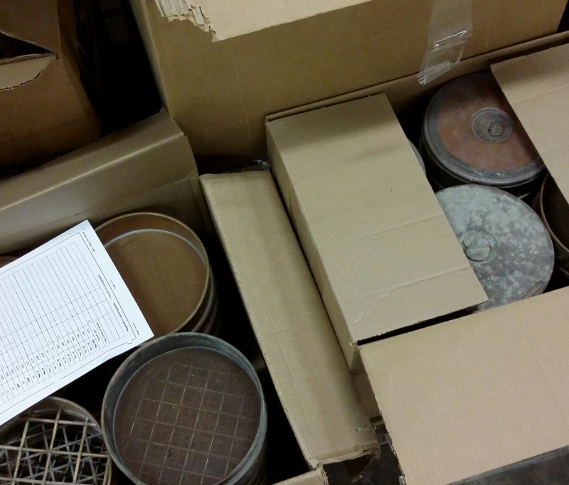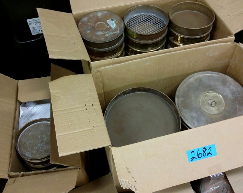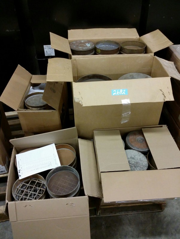 Description: Lot consisting of 5 each boxes of miscellaneous sieve pans and covers.