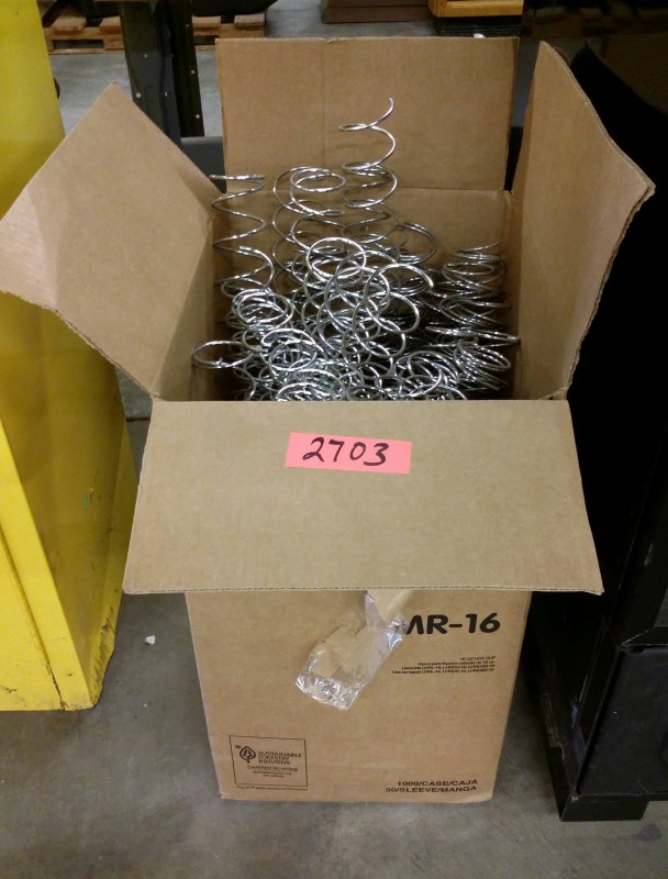 Description: 1 each box consisting of spiral inserts for a spiral snack vending machine.