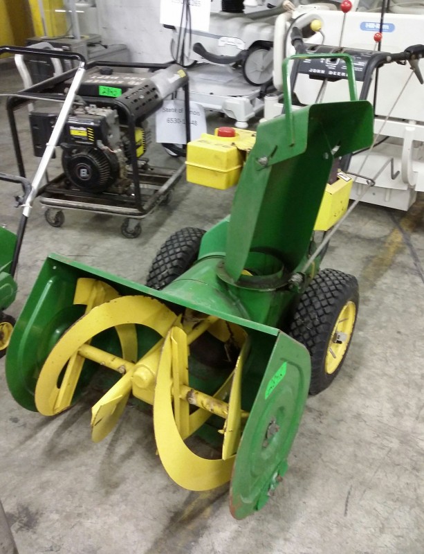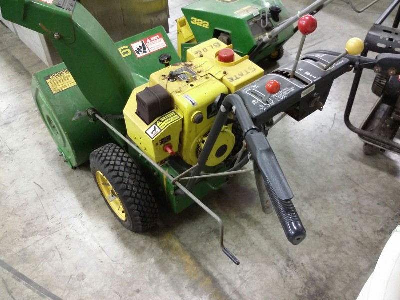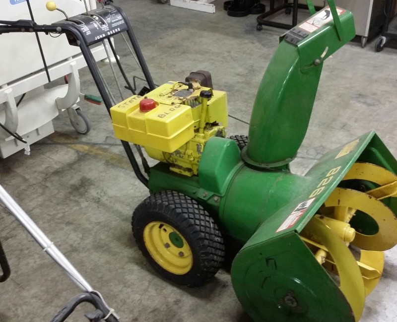 Description: 1 each John Deere model 826 snow blower. Motor spins free, not locked up.