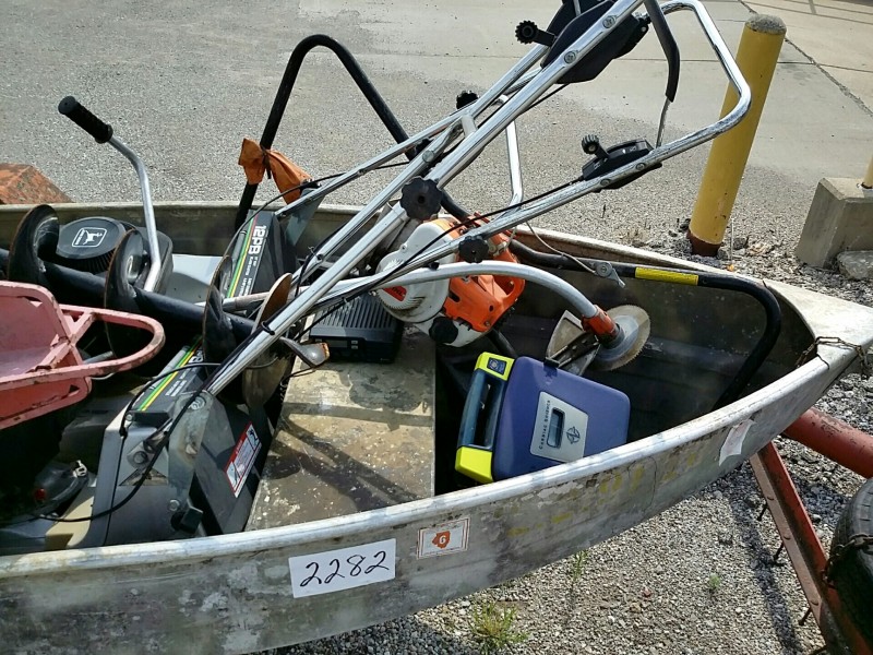 Description: 1 each Donahue trailer with miscellaneous items. NO TITLE available for this unit. Viewing of this lot is highly recommended before bidding.