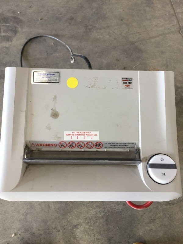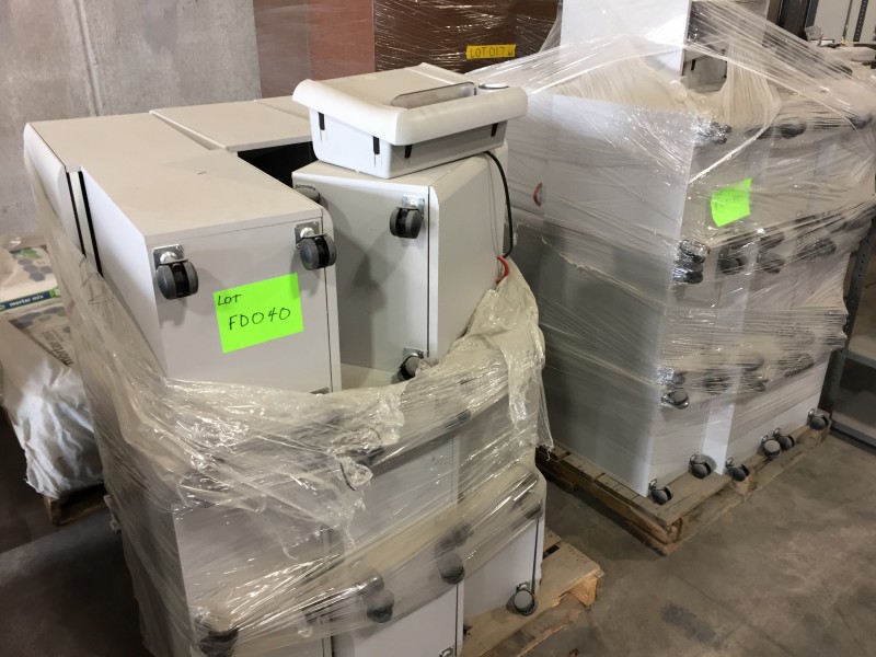 Description: Paper Shredders estimated quantity of 34 each. Model is DestroyIT by Ideal, 2360SMC. Quantity is estimated since they are packed and wrapped on pallets.