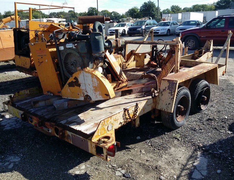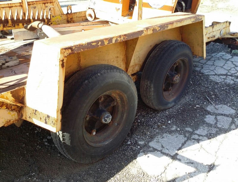 Description: 1 each double axle trailer with 1 each sickle blade mower and 1 each concrete saw. No title available for the trailer.
