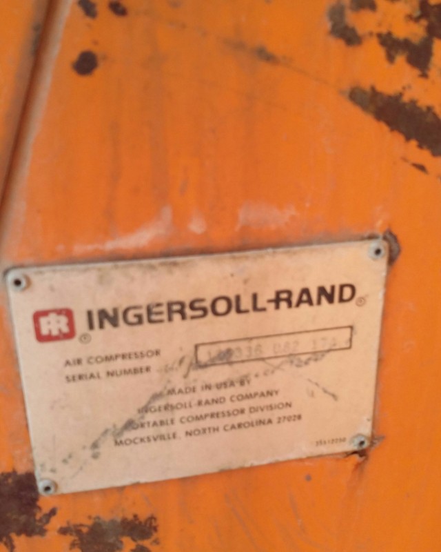 Description: 1 each Ingersol-Rand trailer mounted air compressor. No title available for this unit.