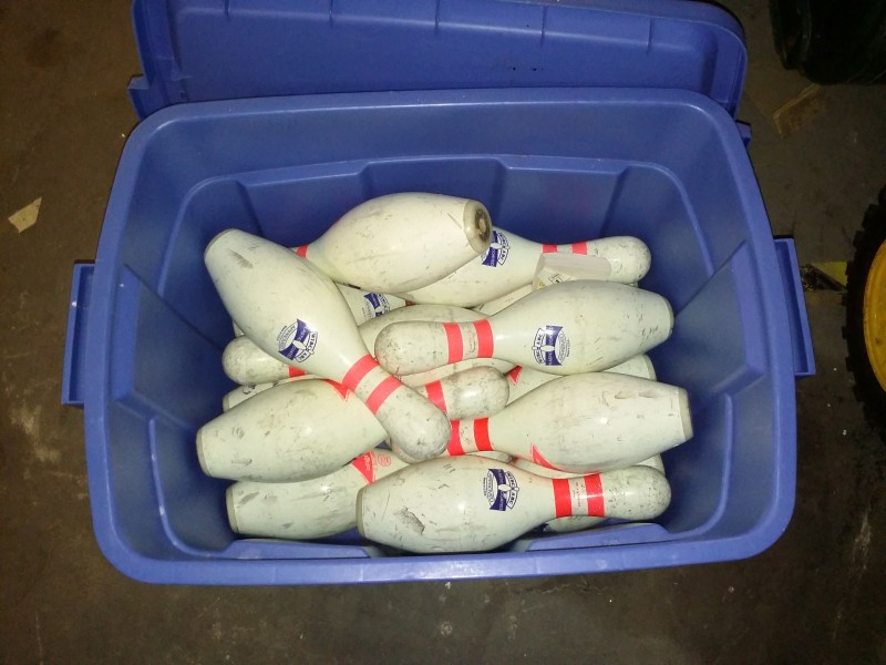 Description: Lot consisting of 1 each bin of bowling pins.