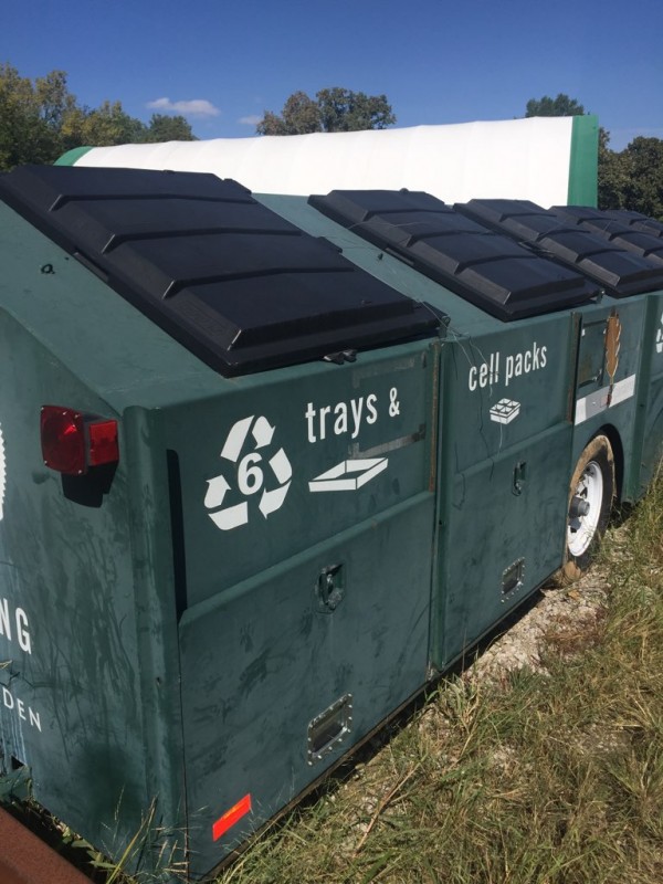 Description: 1 each 18ft recycling style dumpster trailer. Viewing and pick up hours are 8am - 4pm. The contact will have exact location for viewing and pick up of this item. This unit has no title available.