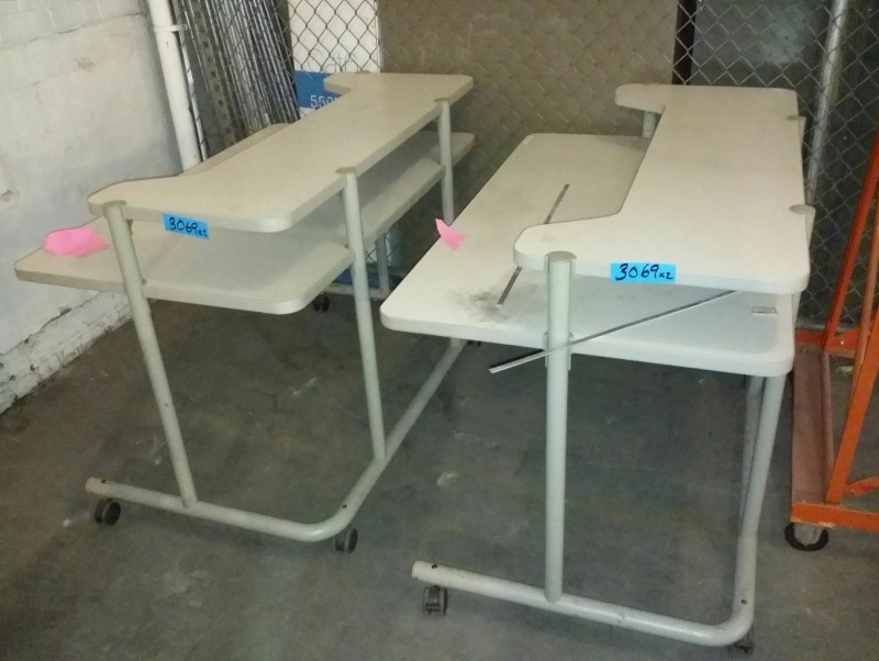 Description: 2 each Anthro computer cart mobile workstation. The worksurfaces are adjustable.