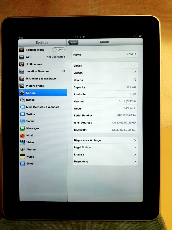 Description: Apple iPad 1st Generation - 64GB - 1 each. Model A1219.