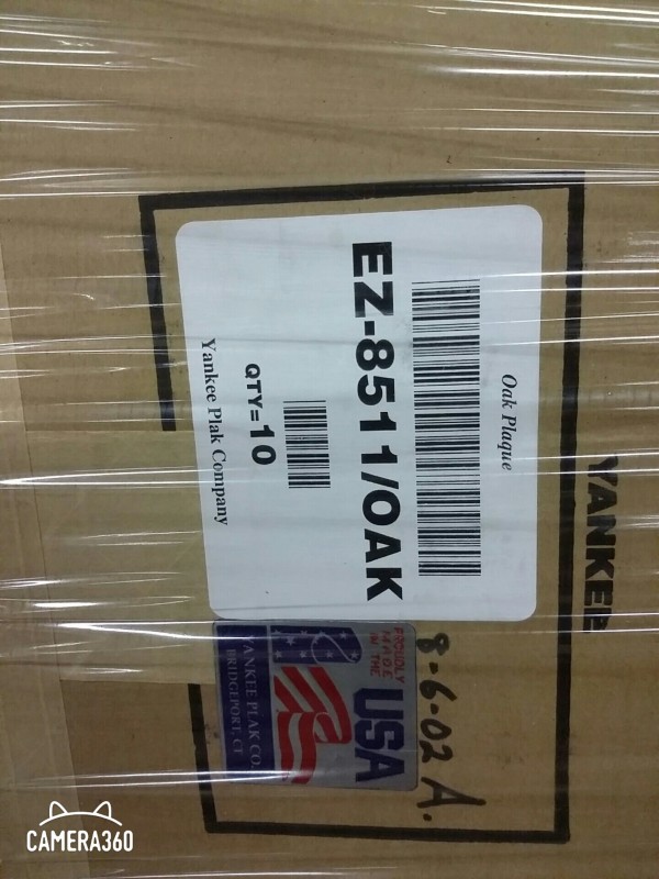 Description: 1 each pallet consisting of cases of Yankee Plak Company oak plaques. Each case contains 10 each plaques.