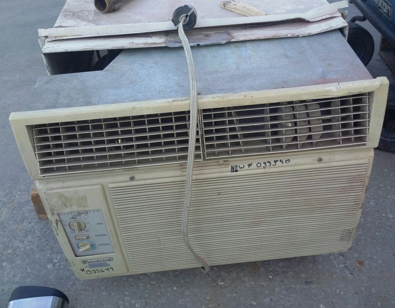Description: 1 each Friedrich ac window unit and 1 each firehose with brass ends.